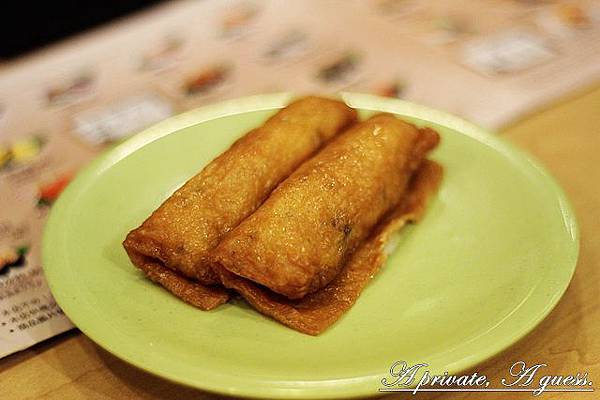 炸蝦捲,這盤也是拿轉盤上的,因為詢問服務人員有哪些炸物說不出個所以然來……但是中與志轉盤上的東西品質真的不差,雖然有點兒冷,卻沒什麼厚重的油味,爽脆的口感也都保持在裡頭。