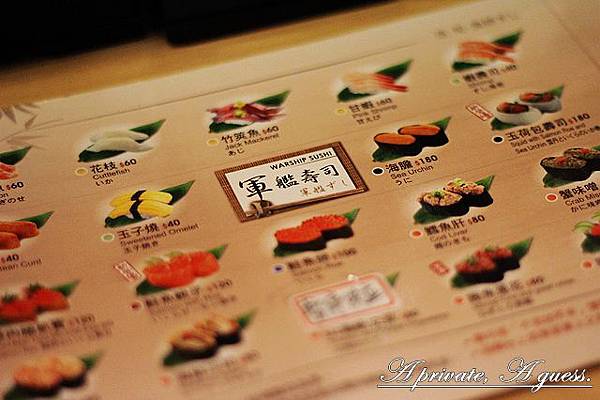 中與志的計價方式以盤色計費,價位從40元至280元,這個價位區間與海壽司、丸壽司和玄海壽司相似,依照以往的經驗,單貫280元的食材不需要刻意強求,因為往往會讓人失望,反倒是中價位以下的握壽司,會有些令人意外欣喜的表現。