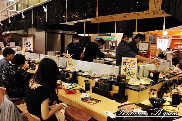 但這裡還是有著輕鬆的商業化氣質,可以隨時隨地很隨意的過來吃上一頓,畢竟許多人對坐在日本料理店的卡布里跟師傅交關,會覺得是一種無形壓力,這類型高貴不貴的迴轉壽司,客群還是很廣大的!!